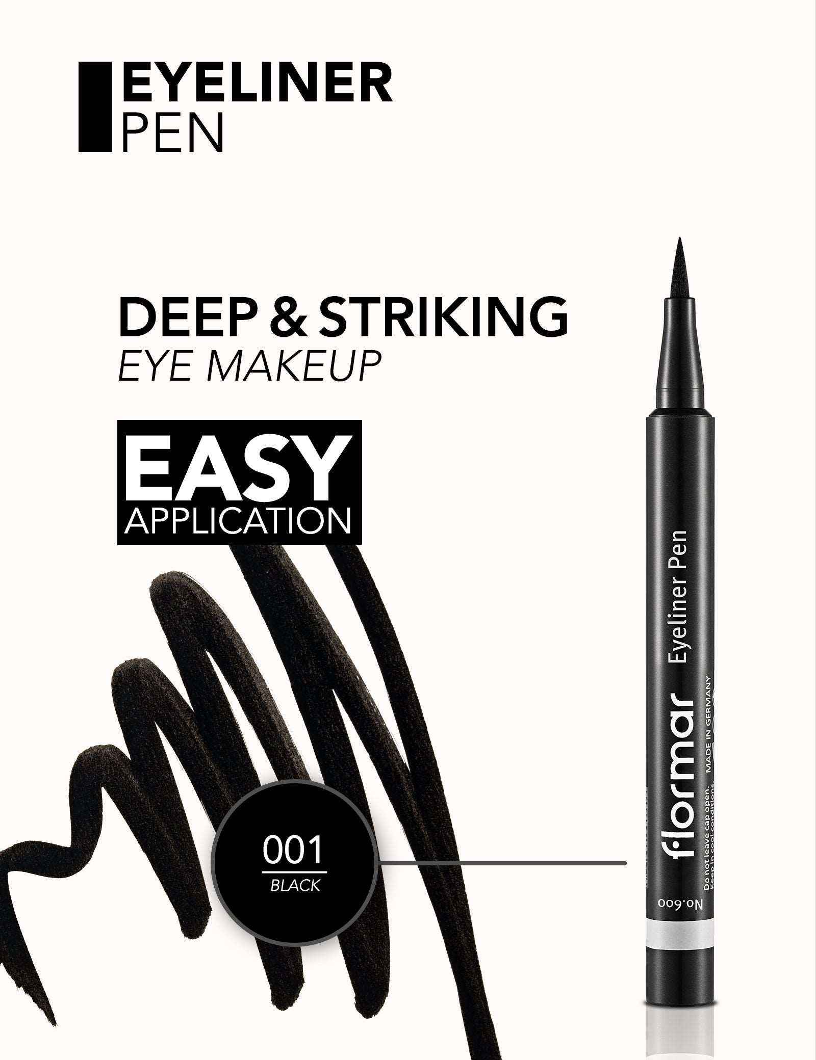 Deep and striking eyes.  It is very easy to use Eyeliner Pen with its practical package and special tip! Carbon Black pigment in its formula adds an intensity to the color black. Additionally, its water-based texture and its ability to draw fine lines will bring out your eyes in a natural way. You can easily create defined lines around your eyes and enjoy your striking look all day long. HOW TO APPLY:  Apply eyeliner above...