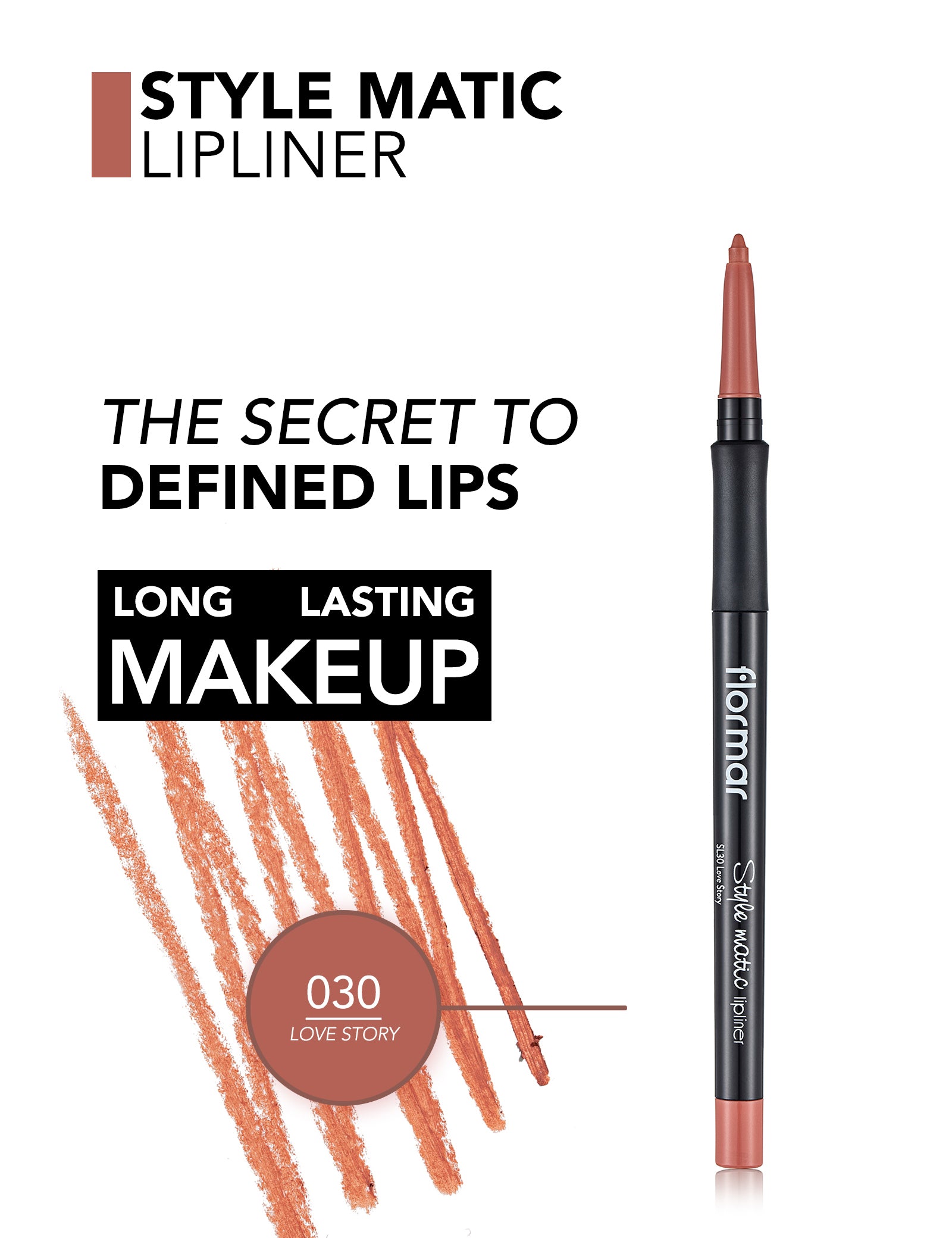 Achieve longlasting,intense colors on your lips with Style Matic Lipliner that offers spectacular coverage! The lipliner,which is easytouse thanks to its twist up mechanism,is available in six different color options to allow you to achieve the perfect harmony with your lipstick. Smooth and defined lips await you with Flormar Style Matic Lipliner,which contains special oil in its formula that offers longlasting stay and velvety softness!