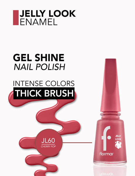 Jelly Look Nail Enamel – New Creating a gel manicure effect without a LASED light,Jelly Look Nail Enamel will add ultra shimmer and intense color to your nails. It also has a special brush to make the application easier. You may see the effect even when you apply the first layer,however when you apply two layers of Flormar nail polish,your nails will look extra shiny and volumized.