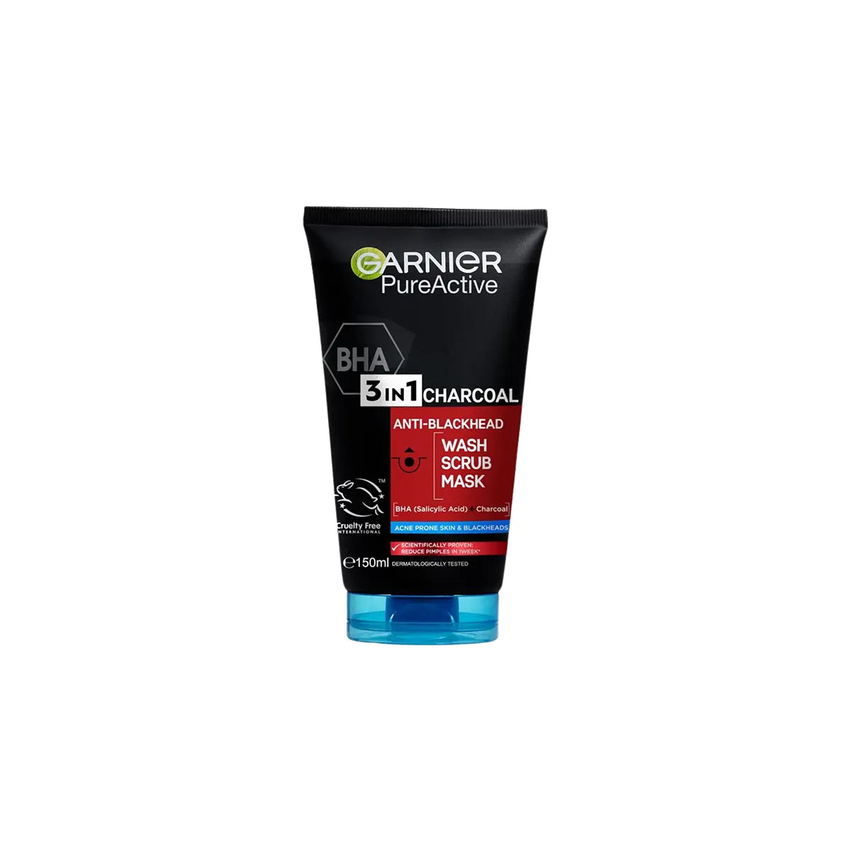 Introducing GARNIER PURE ACTIVE 3 IN 1 CHARCOAL WASH 150ML. This multi-purpose wash combines the power of charcoal to cleanse, exfoliate, and mattify the skin. Leave your skin feeling purified, smooth, and shine-free. Perfect for oily and acne-prone skin.