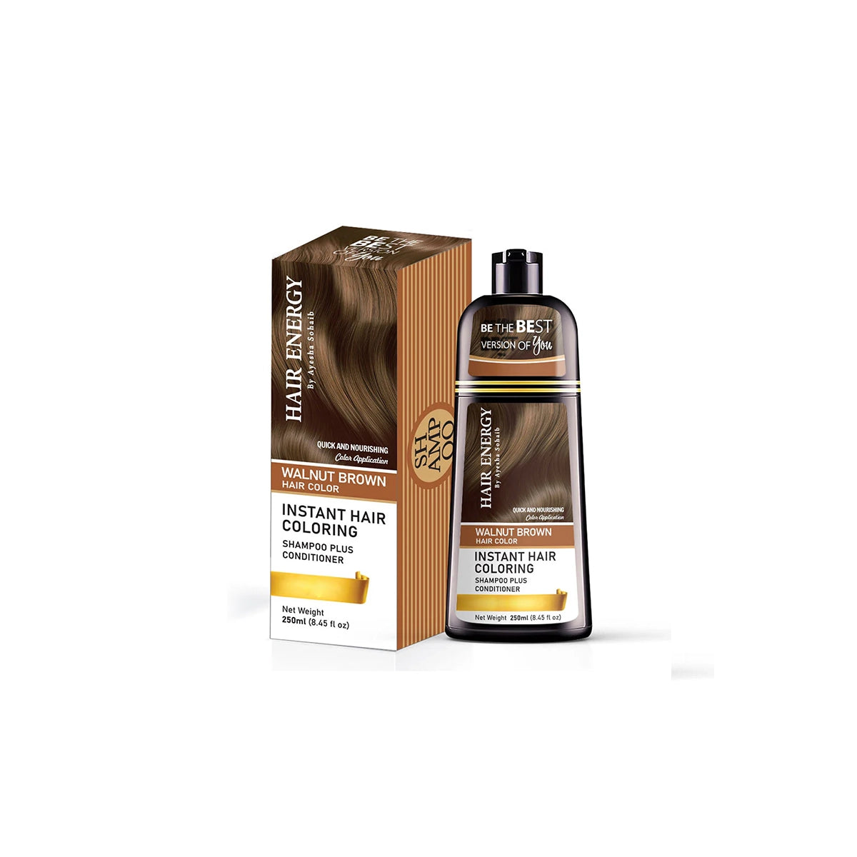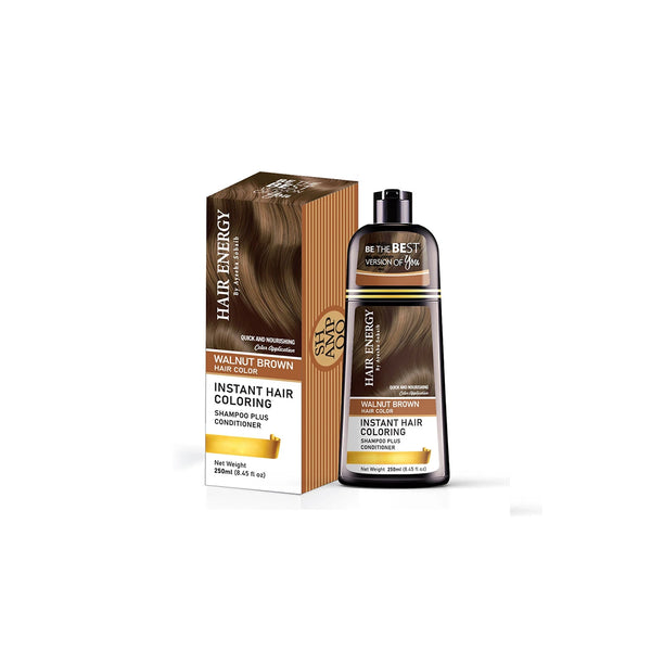 HAIR ENERGY Instant Coloring Shampoo 250ML Walnut Brown is a formula engineered to deliver simultaneous cleansing and temporary hair coloring with professional-grade technology. This expert-developed shampoo combines gentle cleansing agents with walnut brown pigment technology to wash hair while depositing rich walnut brown color, providing instant color enhancement without permanent commitment. The lightweight liquid texture cleanses effectively, delivering color deposition without heaviness or excessive drying, making it suitable for regular use and all hair types seeking temporary walnut brown color with cleansing benefits. The instant coloring shampoo technology works synergistically to cleanse thoroughly, deposit walnut brown pigment evenly, enhance color depth, condition hair, support color longevity, and promote visibly richer brown, healthier-looking hair with consistent use. The advanced formula is dermatologist-tested and clinically validated, ensuring safety and efficacy without harsh chemicals or unnecessary additives. The generous 250ml size provides extended use across multiple applications. Ideal for those seeking professional-grade temporary hair coloring with cleansing benefits and proven efficacy, this shampoo delivers visible results. Apply to wet hair, massage gently to create lather, leave for 5-10 minutes for deeper color, and rinse thoroughly with lukewarm water. Experience visibly richer walnut brown, deeper-toned hair with enhanced color vibrancy, improved shine, cleansed scalp, and a revitalized appearance.