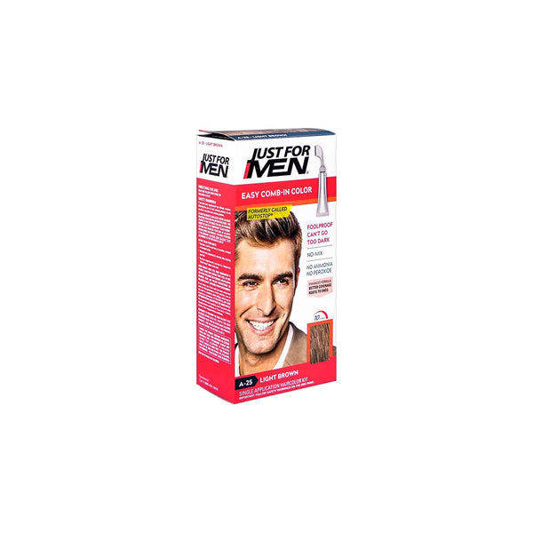 Instantly cover all of your gray hair with JUST-FOR-MEN-COLOR-EASY-COMB-LIGHT-BROWN. The easy-to-use comb makes application effortless and the light brown color creates a natural and subtle look. Say goodbye to gray hair and hello to a more youthful appearance.