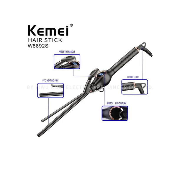 Achieve professional curls at home with the Kemei Hair Curler W8892S. Featuring a ceramic heating plate and 200°C temperature control, it protects your hair while delivering smooth, bouncy curls. Eco-friendly and efficient — shop online in Pakistan at D.Watson Cosmetics today.
