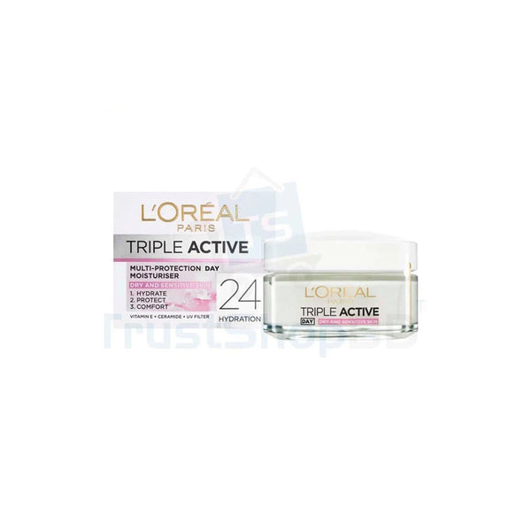 Experience all-day hydration with LOREAL TRIPLE ACTIVE DAY CREAM DRY SKIN 50ML. Formulated for dry skin, this cream provides intense moisture to leave your skin feeling soft and supple. With triple active ingredients, it nourishes and protects for a healthy and radiant complexion.