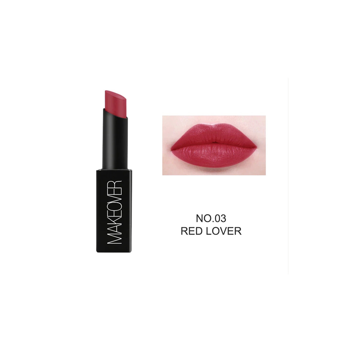 Expertly formulated with a matte finish, MAKEOVER LIPSTICK ROUGE MATTE 03 RED LOVER delivers a vibrant and long-lasting red color. Designed for those who love to make a statement, this lipstick will leave your lips looking flawless and bold.