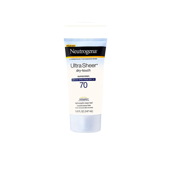 NEUTROGENA Sunscreen Ultra Sheer Dry Touch SPF70 is a 147ml formula engineered to deliver maximum broad-spectrum sun protection with an ultra-lightweight, dry-touch finish. This expert-developed sunscreen combines SPF70 protection with advanced UV filters to shield skin from harmful UVA/UVB rays while maintaining a sheer, matte appearance without greasiness. The ultra-lightweight lotion texture absorbs rapidly, providing long-lasting protection without white cast or sticky residue, making it suitable for daily facial application and all skin types, particularly oily, combination, and acne-prone skin seeking high-level protection. The ultra sheer dry touch SPF70 technology works synergistically to provide comprehensive sun protection, prevent photodamage, reduce sun-induced aging, maintain skin clarity, control excess shine, and support long-term skin health with consistent use. The advanced formula is dermatologist-recommended and clinically tested, ensuring safety and efficacy without harsh chemicals or unnecessary additives. The generous 147ml size provides extended daily application across face and neck areas. Ideal for those seeking professional-grade maximum sun protection with dry-touch finish and proven dermatological support, this sunscreen delivers visible results. Apply generously to clean skin 15 minutes before sun exposure, reapply every two hours or after swimming or sweating. Experience visibly protected, matte, and healthy facial skin with maintained barrier function, reduced sun damage risk, and a smooth, revitalized appearance.