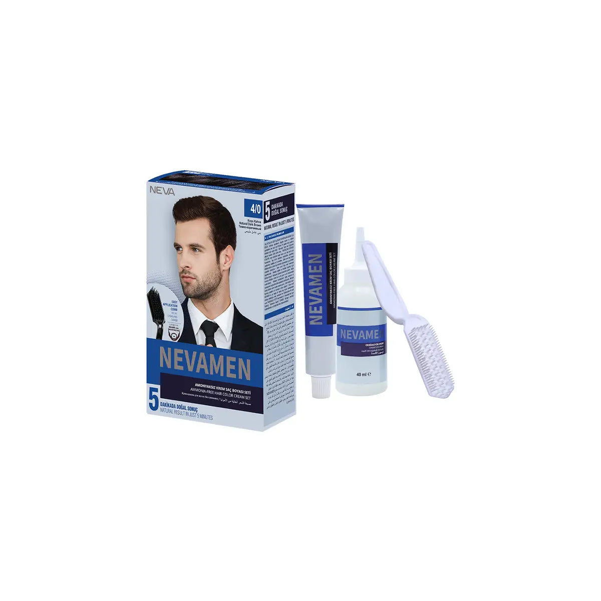 Neva Men Hair Color 4/0 is a professional-grade hair dye designed to provide natural-looking color for men. Its unique formula uses scientific techniques to ensure long-lasting color that won't fade or look brassy. Give your hair a refreshed, youthful appearance with Neva Men Hair Color 4/0.