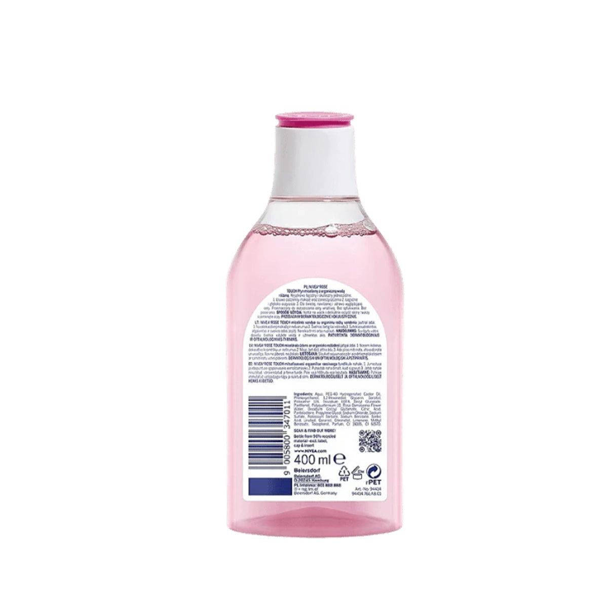 NIVEA Micellair Water Rose Touch is a 400ml cleansing solution combining micellar technology with rose extract for gentle, effective makeup removal with a delicate botanical benefit. This expert-formulated water harnesses micelles' cleansing power while rose extract soothes and refreshes skin during the cleansing process. The lightweight, alcohol-free formula removes makeup, oil, and impurities without harsh rubbing or chemical residue, respecting the skin barrier while maintaining optimal comfort. The rose touch technology imparts a subtle floral fragrance and calming properties ideal for sensitive or reactive skin. Ideal for all skin types, particularly those seeking gentle cleansing with botanical benefits, this micellair water provides comprehensive care in a single step. The generous 400ml size ensures extended daily use. Apply to a cotton pad and sweep across face and eyes morning and evening. Experience clean, calm, and visibly refreshed skin with maintained hydration, enhanced comfort, and a healthy, balanced complexion infused with rose benefits.