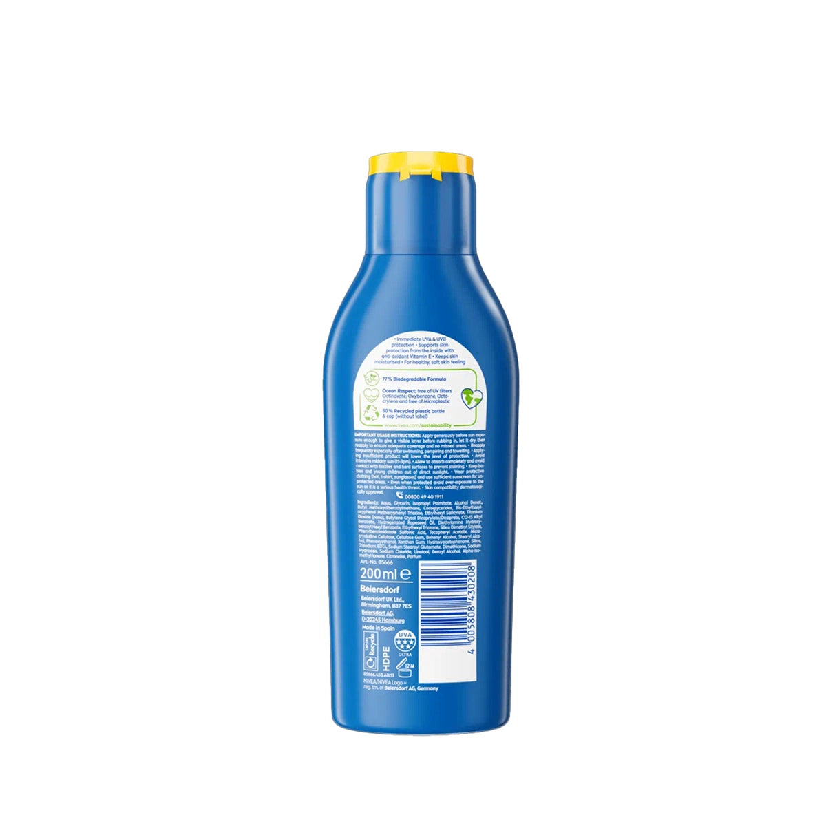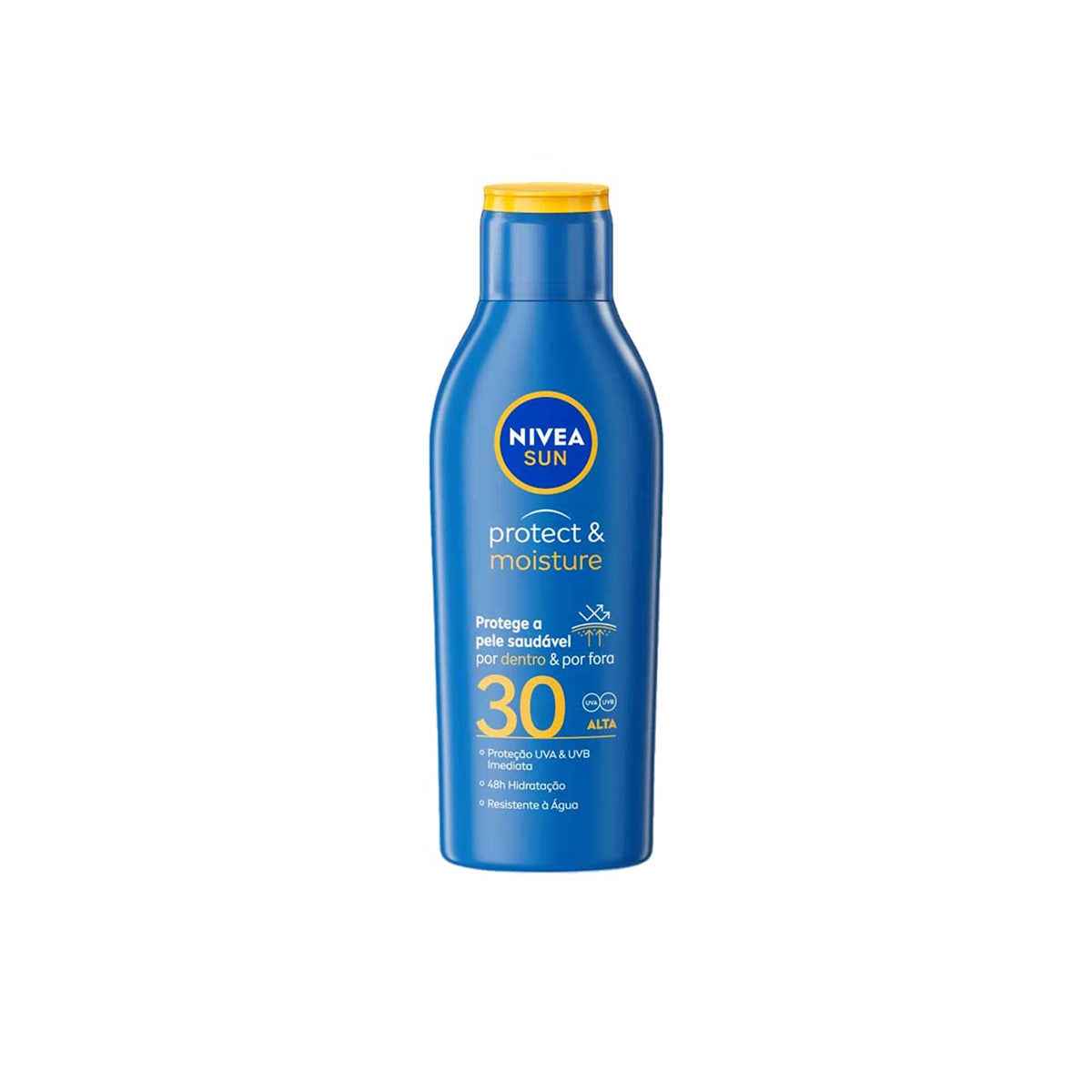 NIVEA Sun Protect & Moisture SPF30 is a 200ml sunscreen engineered to deliver broad-spectrum UVA/UVB protection while maintaining skin hydration throughout sun exposure. This expert-formulated lotion combines SPF30 protection with intensive moisturizing actives to shield skin from harmful rays while preventing dryness and dehydration common with traditional sunscreens. The lightweight yet nourishing texture applies smoothly without heaviness or greasiness, making it suitable for daily facial and body use. The advanced formula is water-resistant and designed to withstand swimming and perspiration while the moisture-lock technology ensures skin remains soft and comfortable during extended sun exposure. The protect & moisture complex works synergistically to provide reliable sun protection with sustained hydration. Ideal for all skin types seeking balanced sun care, this sunscreen provides comprehensive benefits. Apply generously to exposed skin 15 minutes before sun exposure, reapply every two hours or after swimming. Experience reliable sun protection with maintained hydration, enhanced comfort, and visibly healthy, protected skin.