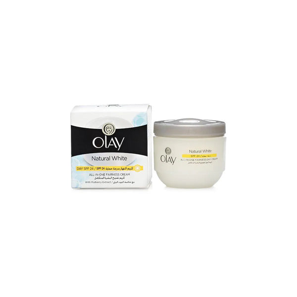 Reveal naturally radiant skin with OLAY Natural White Day Cream 50G. Expertly crafted with natural ingredients, this day cream nourishes, hydrates, and protects your skin throughout the day. Its unique formula helps reduce the appearance of dark spots, leaving your complexion bright, even, and healthy-looking. Perfect for daily use, this cream delivers lasting hydration and a naturally luminous glow.