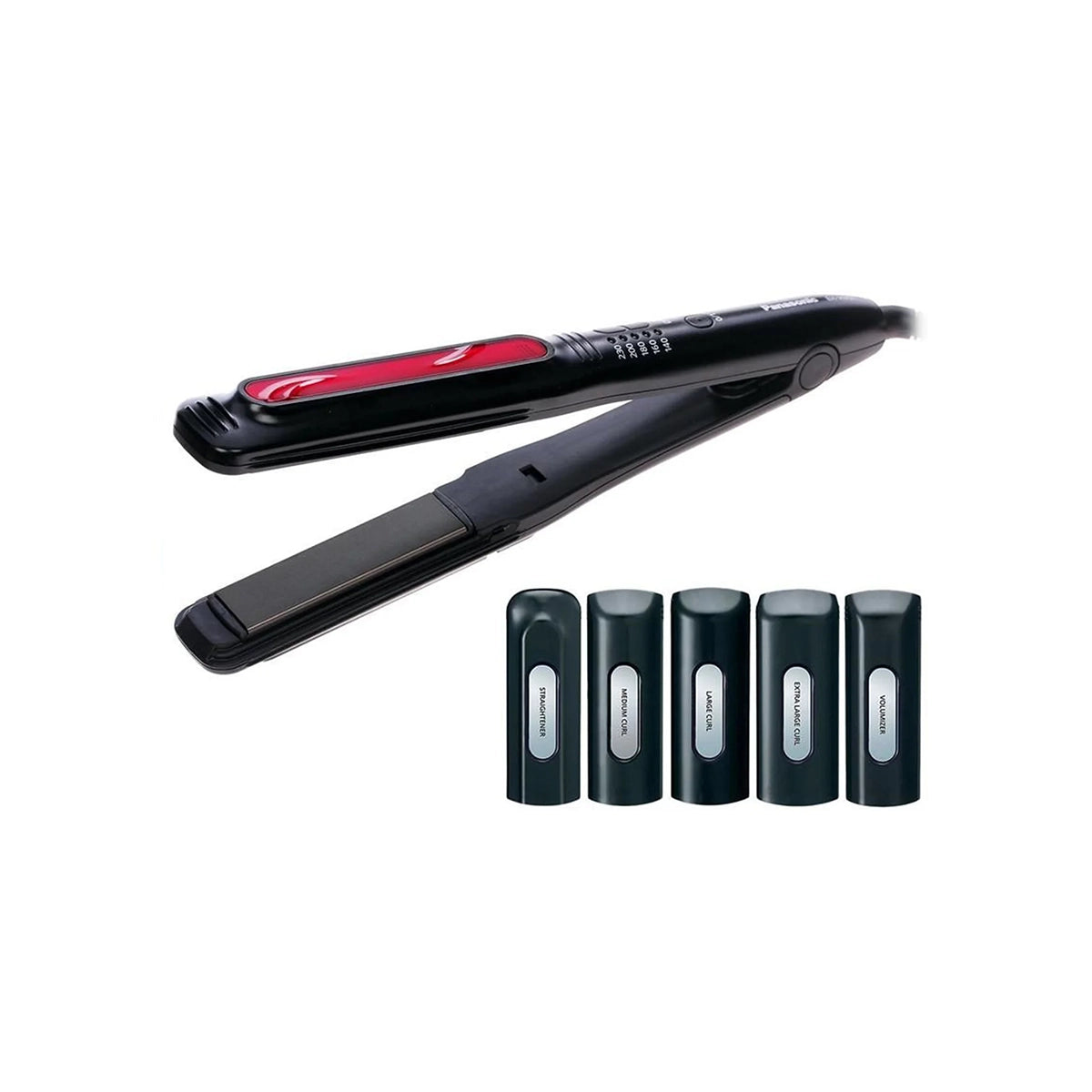 The Panasonic Hair Straightener K615 is designed for versatility and performance. With five interchangeable attachments, you can create straight, wavy, or voluminous styles — all from one tool. The smooth sliding plates ensure even heat distribution for effortless styling and minimal hair damage.