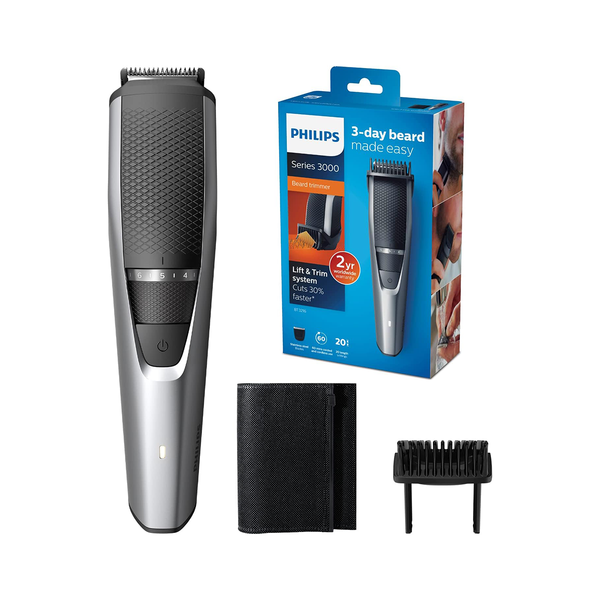 Achieve a perfectly groomed look with the Philips Beard Trimmer BT3216. This high-performance trimmer features the innovative Lift & Trim system, lifting low-lying hairs to ensure efficient, even trimming.