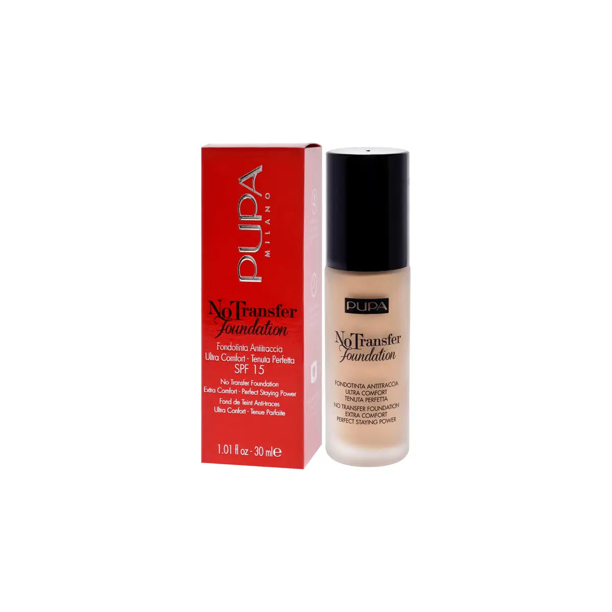 Expertly formulated with SPF15, PUPA's No Transfer Foundation in 02 Light Beige offers flawless coverage that won't transfer or fade throughout the day. Enjoy a long-lasting, natural look with added sun protection. Try it today!