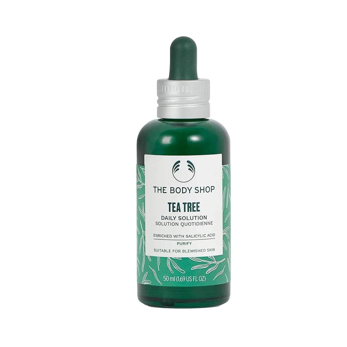 THE BODY SHOP Tea Tree Daily Solution is a 50ml formula engineered to deliver daily blemish prevention with purifying tea tree technology. This expert-developed solution combines concentrated tea tree oil with clarifying actives to maintain skin clarity, prevent breakouts, and support healthy complexion with consistent daily use. The lightweight liquid texture applies smoothly, delivering effective treatment without heaviness or greasiness, making it suitable for daily facial application and all skin types, particularly oily, combination, and acne-prone skin. The tea tree daily solution technology works synergistically to prevent blemishes effectively, reduce bacterial growth, minimize excess oil, support skin clarity, maintain balanced complexion, and promote visibly clearer, healthier-looking skin with consistent use. The advanced formula is dermatologist-tested and clinically validated, ensuring safety and efficacy without harsh chemicals or unnecessary additives. The convenient 50ml size provides extended daily use across multiple applications. Ideal for those seeking professional-grade daily blemish prevention with tea tree benefits and proven efficacy, this solution delivers visible results. Apply to clean skin morning and evening using cotton pad or fingertip, focusing on acne-prone areas. Allow to dry completely before applying moisturiser or other products. Experience visibly clearer skin with prevented breakouts, reduced blemishes, improved clarity, balanced oil control, and a smooth, revitalized complexion.