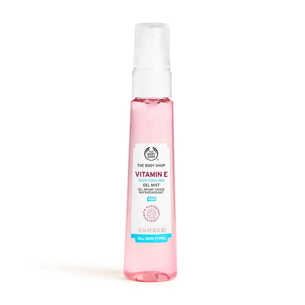 The Body Shop Vitamin E Gel Mist Skin Cooling spray is a 57ml mist that refreshes and hydrates your skin. Enriched with Vitamin E, this cooling mist helps to protect and nourish your skin, leaving it feeling smooth and revitalized. Perfect for a quick burst of hydration on-the-go.