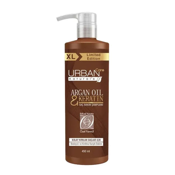 URBAN CARE Argan Oil & Keratin Shampoo combines the nourishing benefits of argan oil with the strengthening power of keratin to restore and protect hair. This 450ml formula gently cleanses while enhancing hair elasticity and shine, helping reduce breakage and frizz. Ideal for revitalizing damaged or dull hair, it supports a smoother, healthier scalp and promotes strong, resilient strands with every wash.