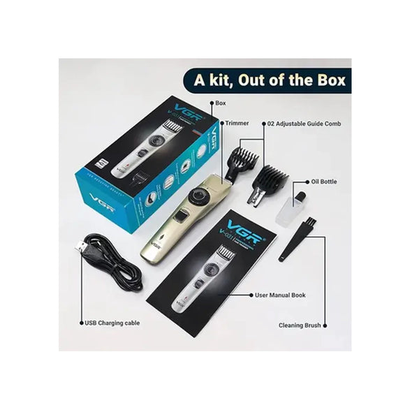The VGR Hair Trimmer V031 is a professional cord and cordless hair clipper designed for both home and barber use. Its built-in rechargeable battery offers up to 120 minutes of runtime with just 1.5 hours of charging. The trimmer includes 2 adjustable cutting guides, allowing precise hair length adjustments from 1mm to 20mm in 0.5mm steps. The sliding comb automatically adjusts for seamless trimming, while the ergonomic and waterproof design ensures comfort and durability. Experience...